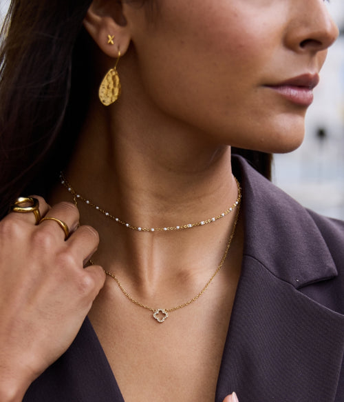 All of our jewellery is made from strong stainless steel and coated with 18K real gold using a PVD (Physical Vapor Deposition) process, making it 100% waterproof and highly durable.